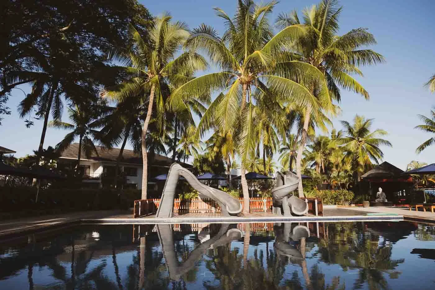 The kids pool at Hilton Denarau is awesome for kids who love slides straight into the pool!
